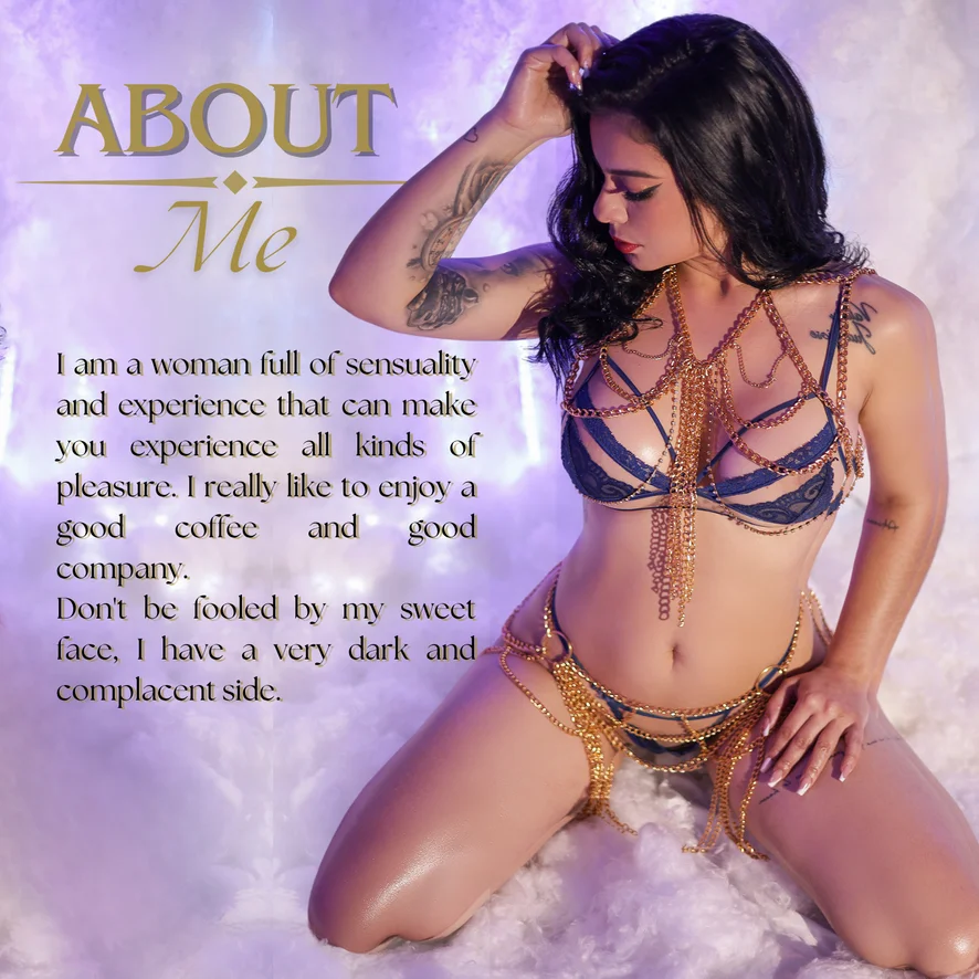 I’m a passionate woman who knows exactly what she wants—sensual, playful, and bursting with a deliciously wicked imagination. I love exploring new people and cultures, and nothing excites me more than seducing you first with my words... and then showing you just how much I can do with my body.